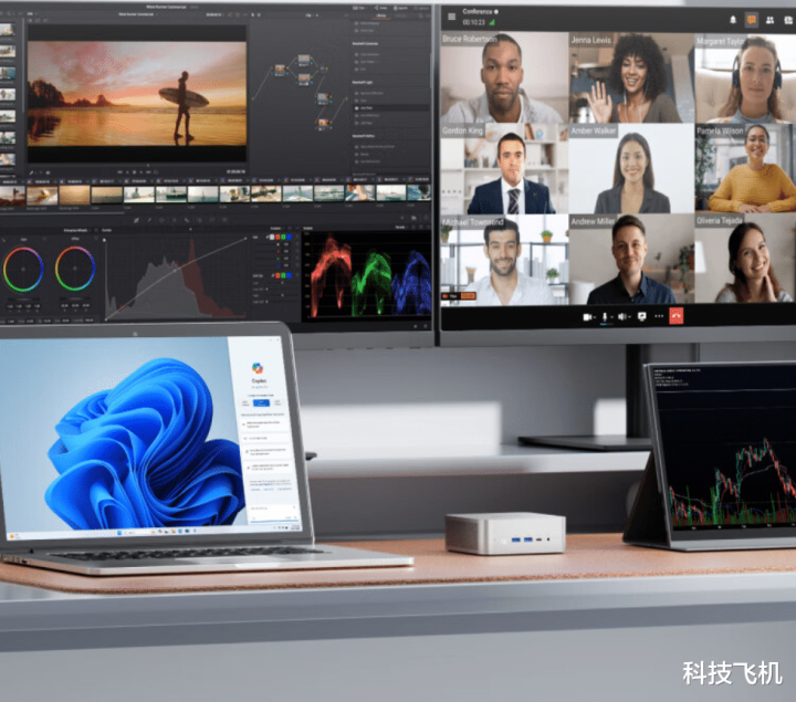 可能很多人觉得迷你主机一定会在插口上做手脚,少一些接口来控制成本,其实并不是,铭凡 X1-255 提供双 M.2 PCIe 4.0 SSD 插槽,最高支持 8TB 超大容量(单盘速率高达 7000MB/s),并支持最大 64GB DDR5 内存,扩展性极强。官方提供从 16G+1T 起步的多种存储组合,丰俭由人。
