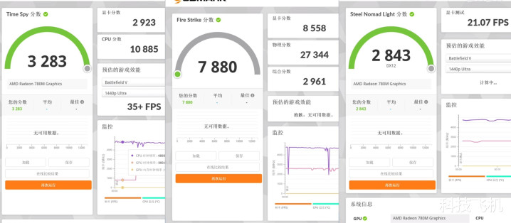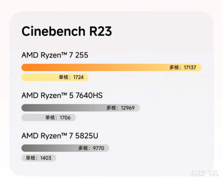 而在性能的核心测试之中3DMark跑分与8845HS跑分没有明显的差异,可见实际的性能表现我们并不用担心, Ryzen 7 255处理器这8核16线程、4.9GHz睿频,仅65W功耗。其性能轻松应对日常办公和主流3A游戏,